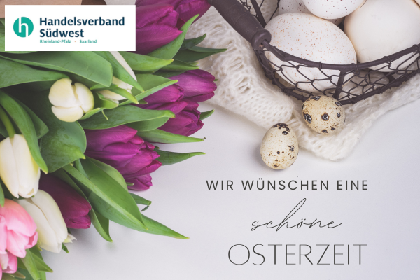 Der Handelsverband Südwest wünscht allen Mitgliedern, Partnern und Wegbegleitern ein paar ruhige Osterfeiertage. Zeit zum Durchatmen, für Familie und Freunde und die schönen Dinge des Alltags. Ihr Team des Handelsverbands Südwest